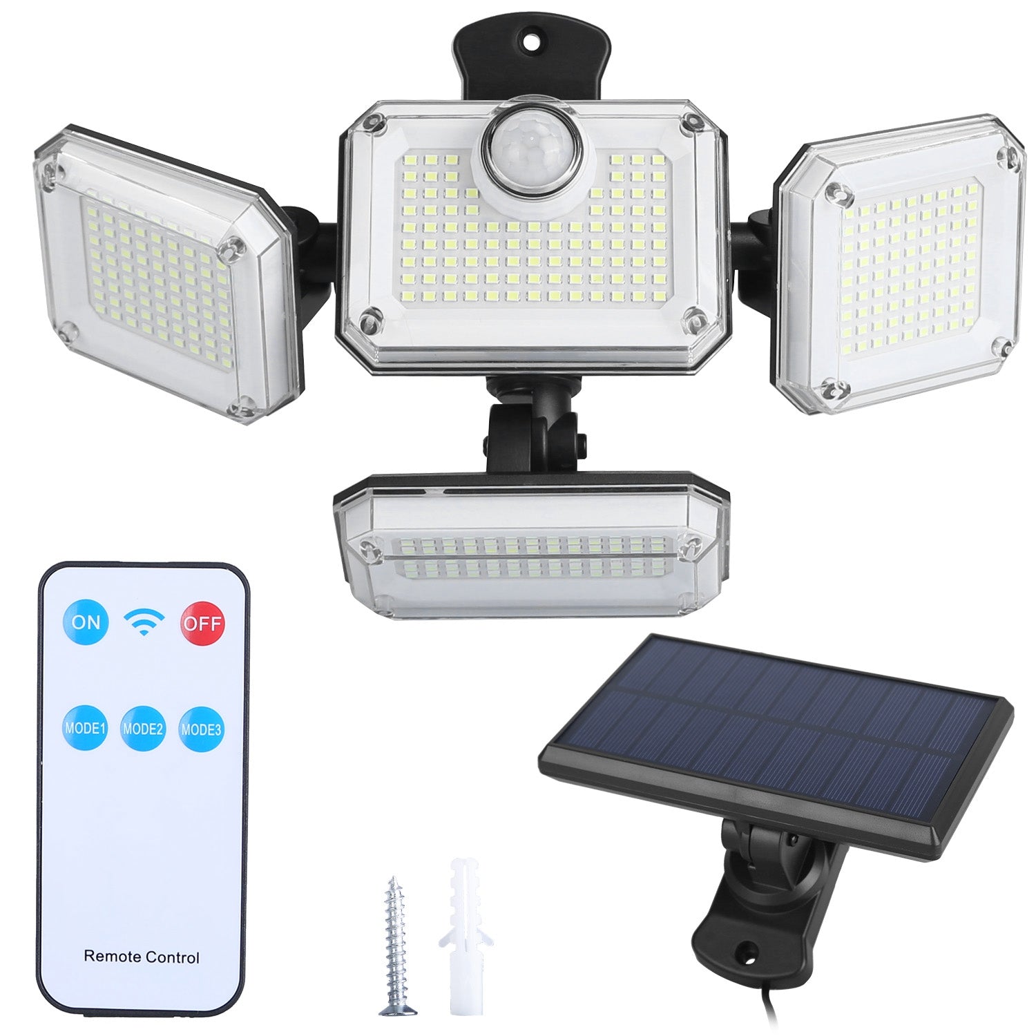 4 Adjustable Heads & Separate Solar Panel: The 4 adjustable heads can move up, down or horizontally, which allows you to light any angle you want. The solar panel can be adjusted at will to ensure that each angle can absorb sunlight to the maximum extent. Moreover, the separate panel is equipped with 189in long cable, which enables you to install it at different angles. The sensing angle of up to 120° and the sensing distance of 118in can provide additional brightness and a larger visible area.