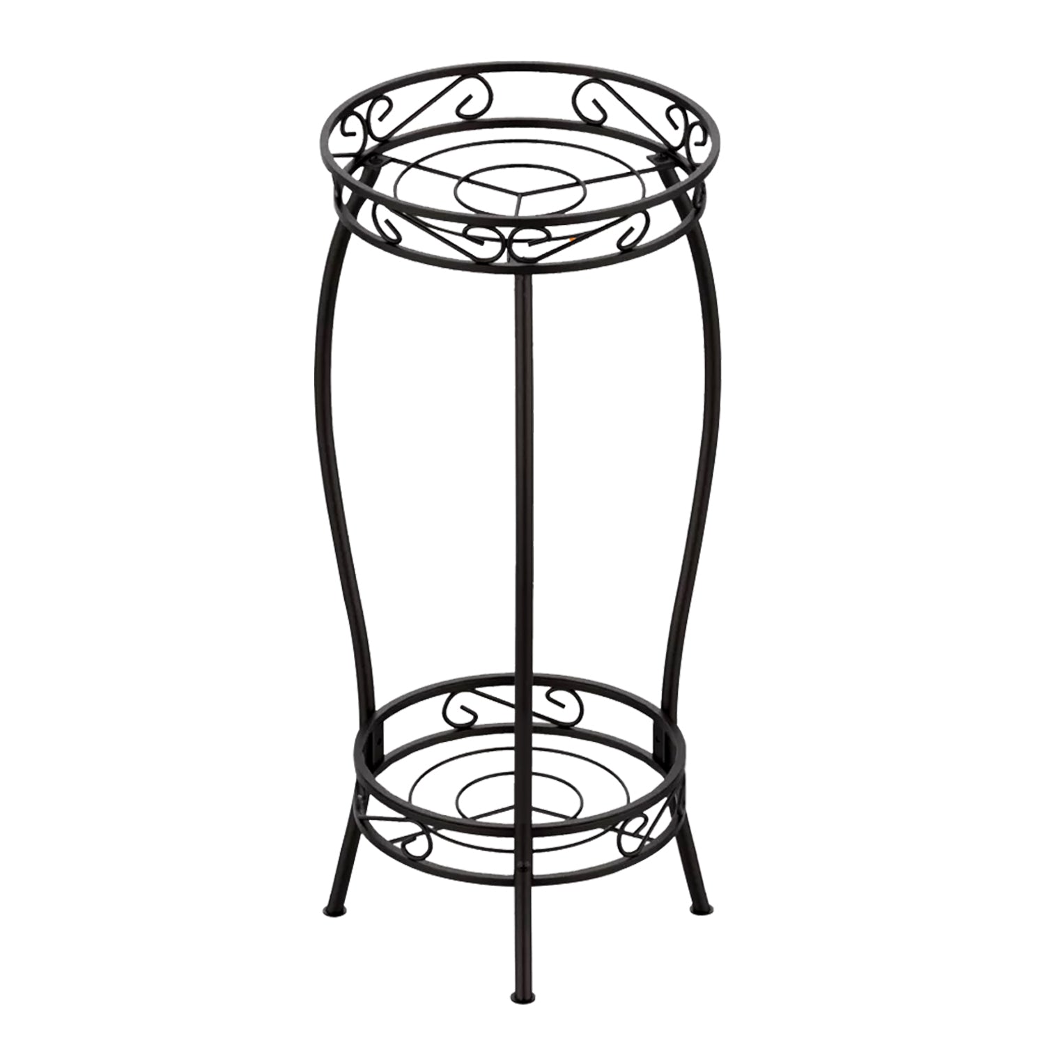 Indoor & Outdoor Plant Stand: Our 2-tier plant stand with the upper tier diameter of 11.33in and bottom tier diameter of 9.72in, can fit for flower pots of different sizes. The modern and simple appearance makes it a seamless addition to match various decoration styles both in indoor and outdoor, like living room, office, garden, patio, balcony.