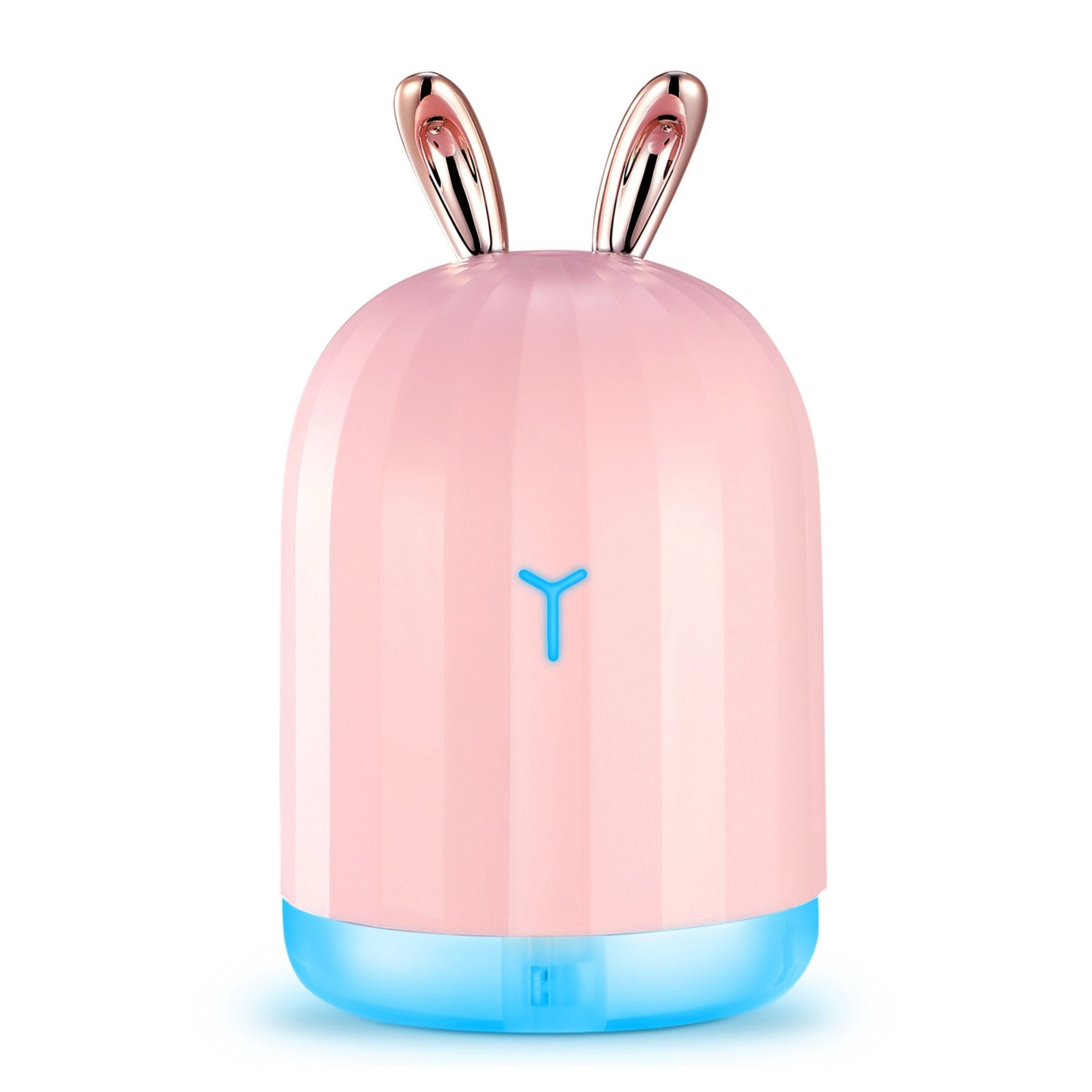 220ml Cool Mist Humidifier with 7 Color Breathing Lights - Auto Off - Office, Home, Yoga - Pink -