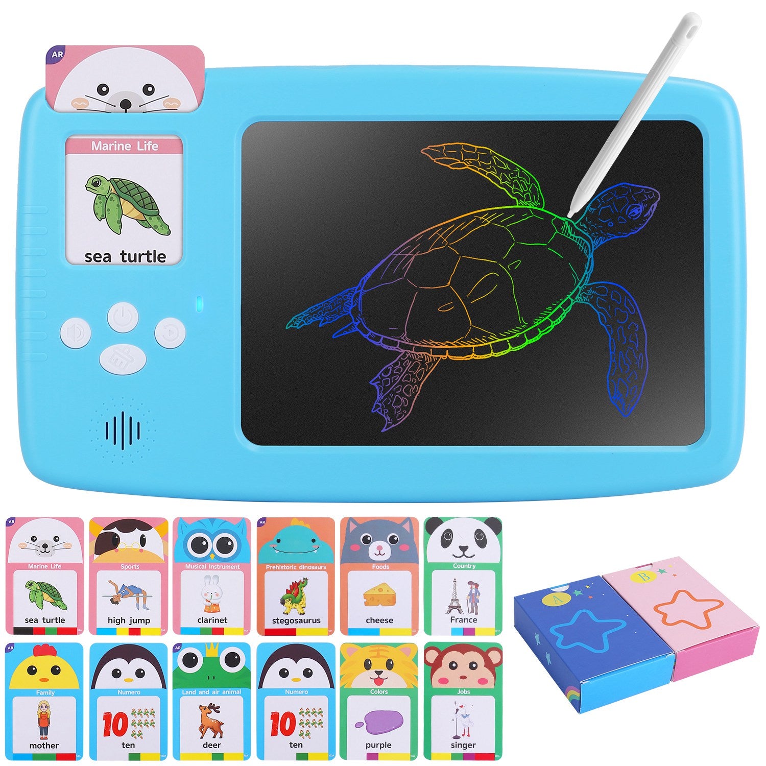 224 Words Toddler Learning Toy Talking Flash Cards with LCD Writing Tablet Preschool Educational Reading Drawing Machine Autism Sensory Toy 3+ Years O - Blue -