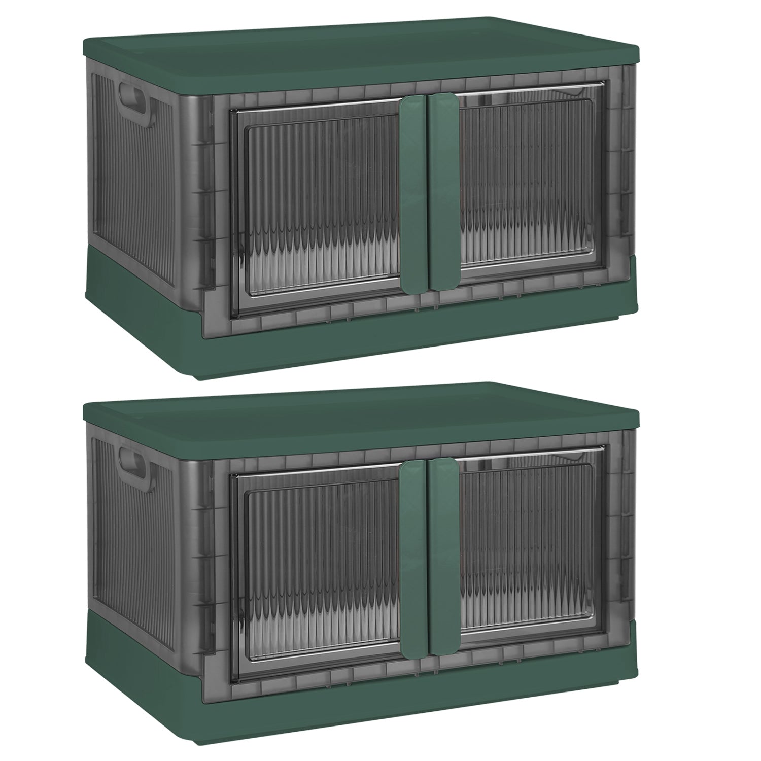 2Pcs 72L Foldable Storage Bins with Lid Collapsible Stackable Closet Organizer Containers with Front Door Lock 4Pcs Wheels - Green - 37cm