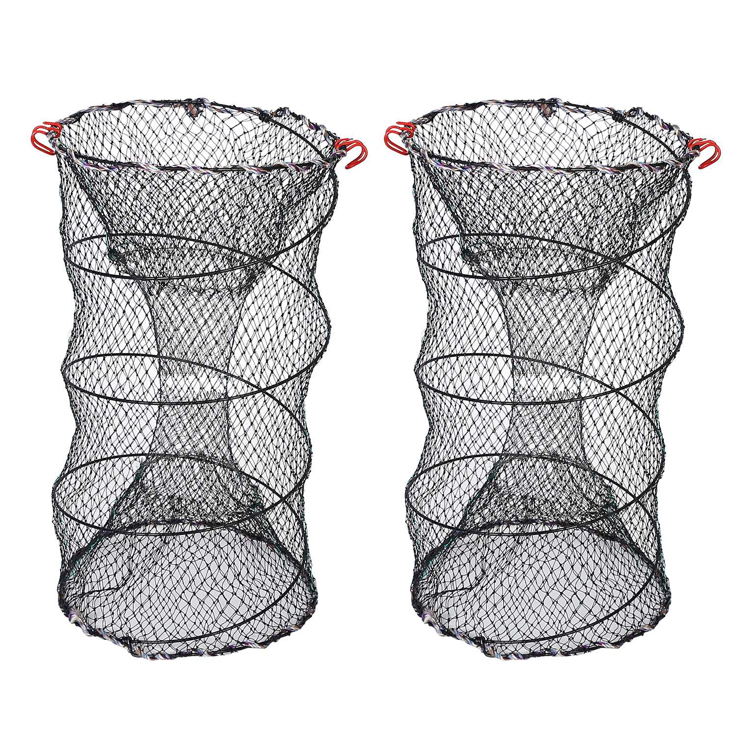 This crab trap provides you with a larger volume that can catch crabs, crayfish, shrimp, lobster, and etc.. The closed ring design can increase the chances of crab catching effectively. Once the crabs are in the trap, they will stay there until you pull them up. Besides, you can easily take out the catch from the top opening. Each package contains two traps in order to catch more crustaceans.