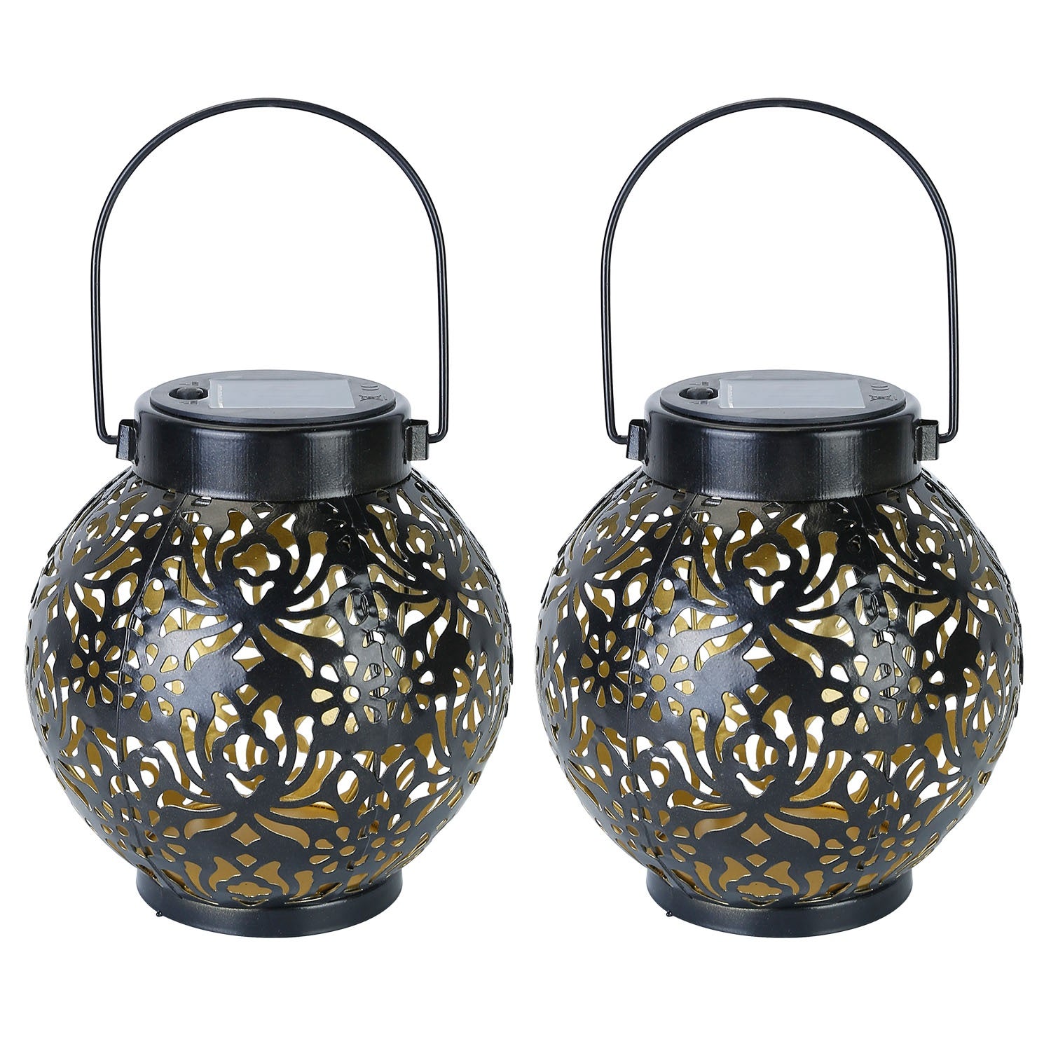 2Pcs Solar Powered Hanging Lights Outdoor Waterproof Decorative Hollow Lantern Lamps Warm White Retro Style Decorative Landscape Lights For Patio C - Black -